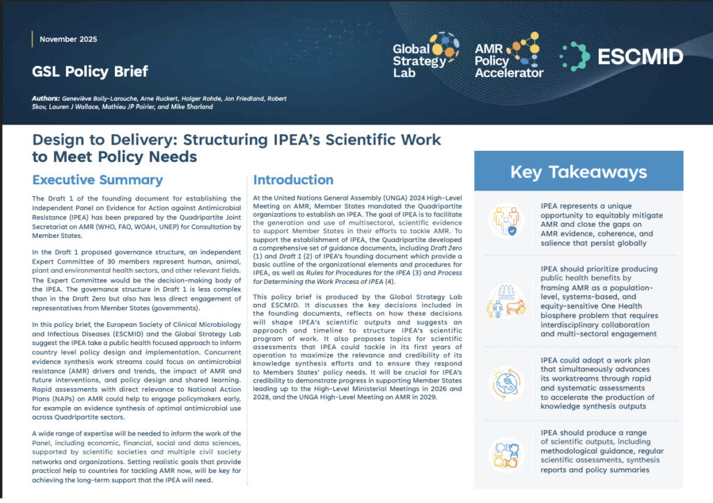 Download the Policy Brief: Design Options for Building an Effective Independent Panel on Evidence for Action against AMR (IPEA)